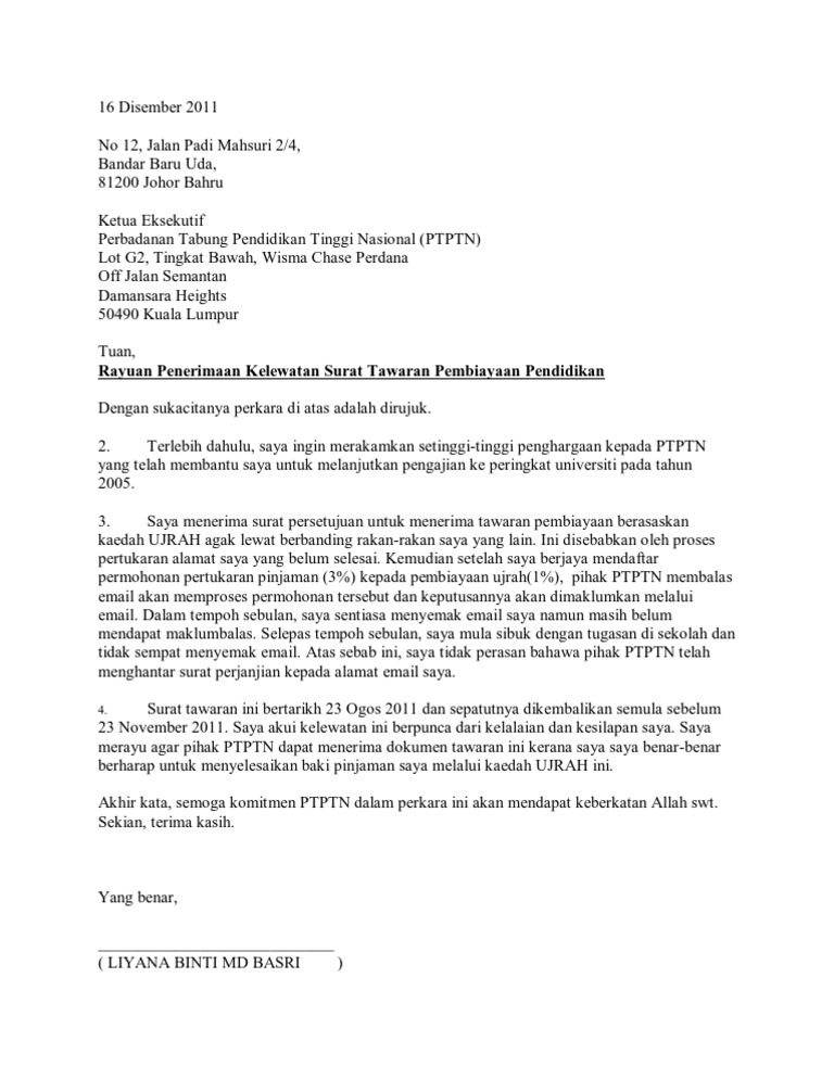 Jika anda telah di senarai hitamkan ataupun blacklist oleh perbadanan tabung pendidikan tinggi nasional ptptn kerana gagal. The collection that comprising chosen picture. Contoh surat rayuan bayaran ansuran ptptn.